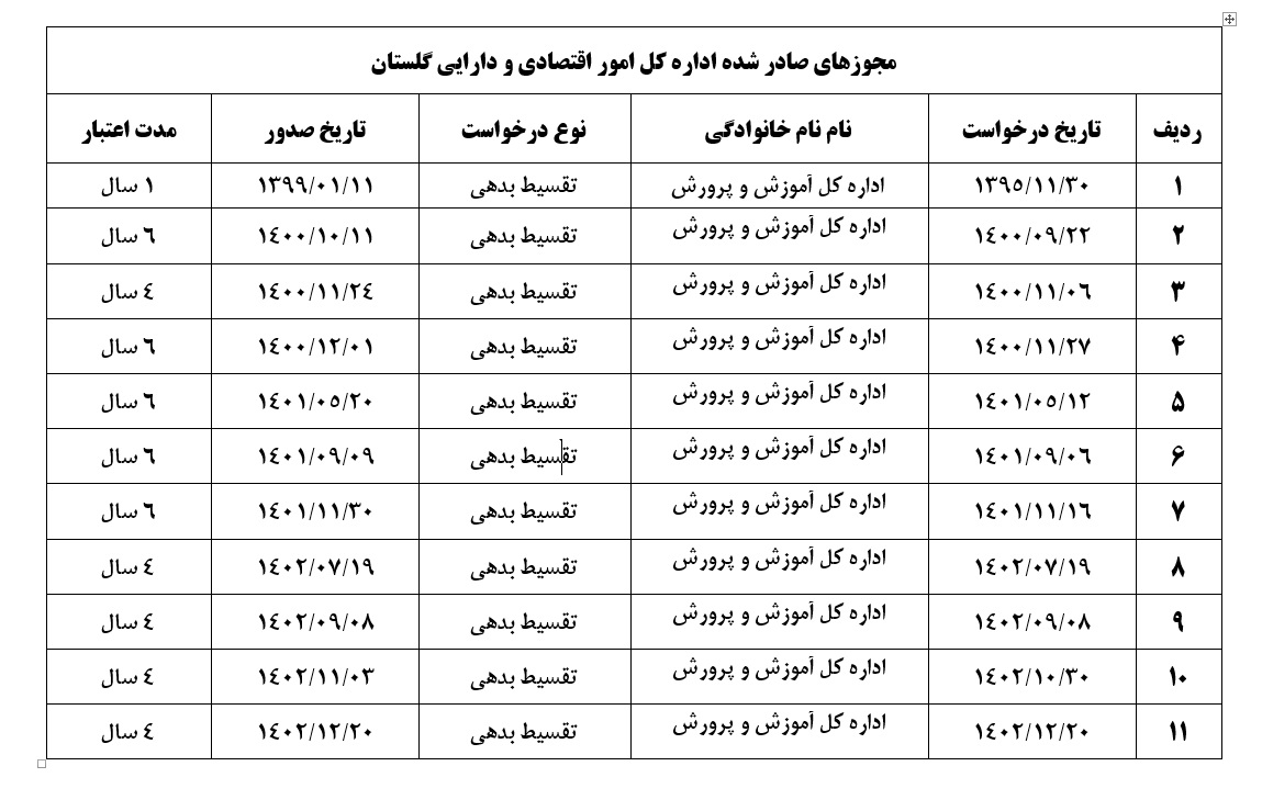 https://mefa.ir/x7q2r۲۲ خرداد ۱۴۰۳ - ۱۲:۴۶ کد مطلب 16879-doc استانها گلستان صفحه اصلی استانها گلستان مجوزهای اعطایی اداره کل امور اقتصادی و دارایی گلستان مجوزهای اعطایی اداره کل امور اقتصادی و دارایی گلستان ۲۲ خرداد ۱۴۰۳ - ۱۲:۴۶ کد مطلب: 16879-doc