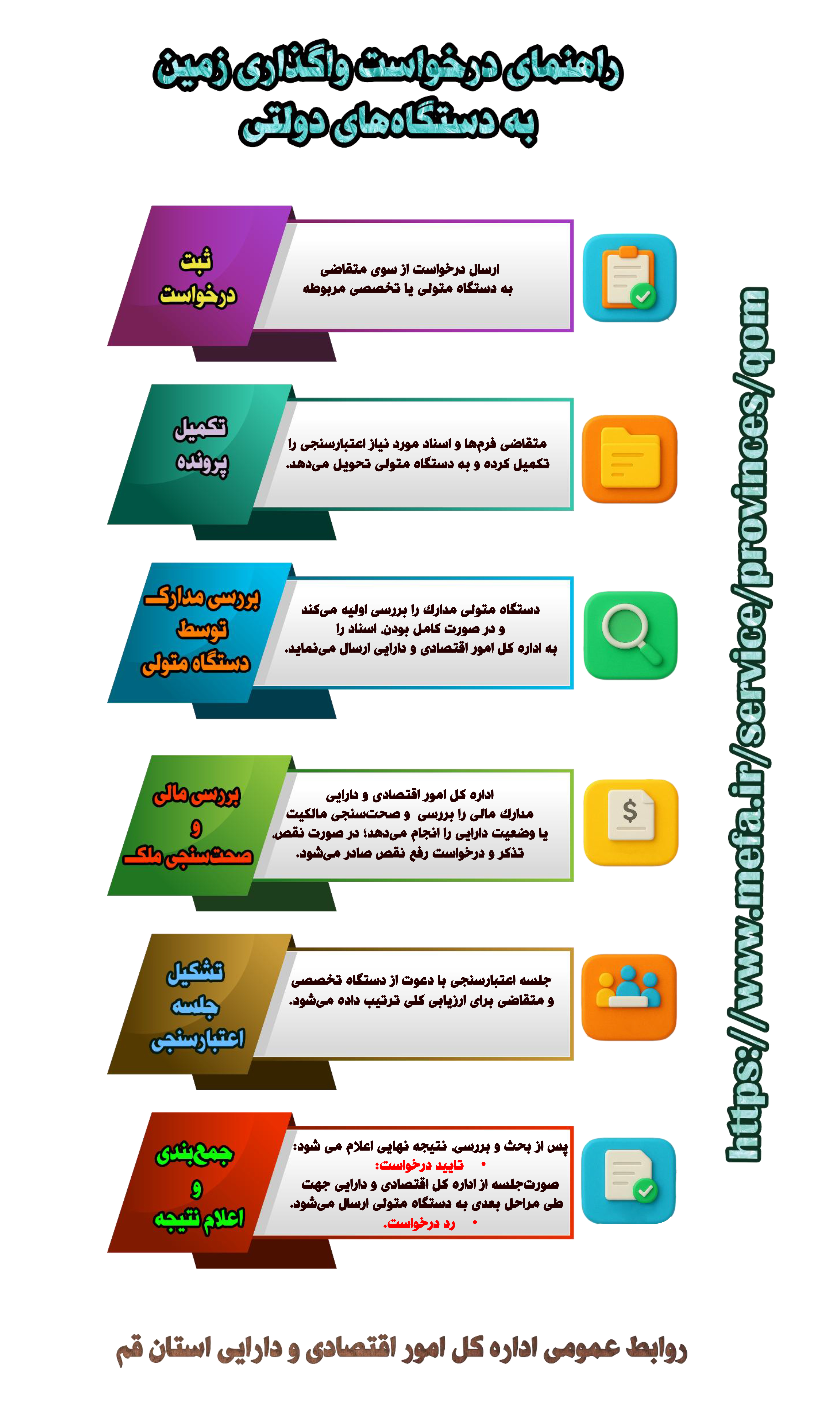 https://mefa.ir/x88tK کد مطلب 721413 صفحه اصلی استانها قم پرسشهای متداول چگونه از «درگاه ملی مجوزها» مجوز کسبوکار خود را دریافت کنم؟ پاسخ به روایت اینفوگرافی سازوکار واگذاری زمین به دستگاههای دولتی چگونه است؟ پاسخ به روایت اینفوگرافی